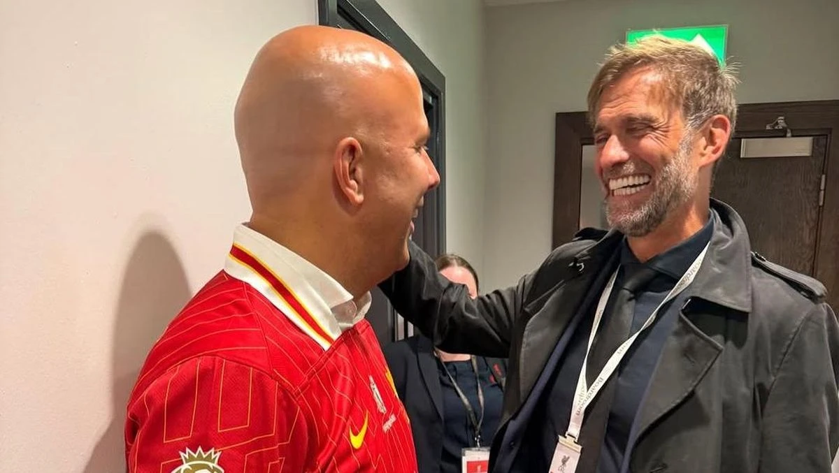 Kehadiran Klopp di Anfield jadi momen buat pertemuan dengan Arne Slot. Keduanya akhirnya bersua di lorong stadion dan tampak berbicara akrab.